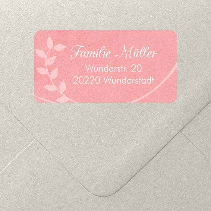 Schöne Adressaufkleber in zartem Rosa gefällig? Ein unverkennbarer Blickfang für Ihre Postumschläge mit dezent verzierenden Blüten. Individualisieren Sie jetzt Ihre Botschaften an Freunde mit diesen einzigartigen Adressetiketten.