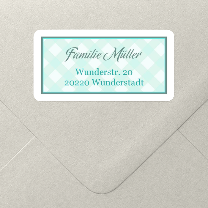 Verzieren Sie die Einladungsbriefe zur Taufe Ihres Kindes mit dem niedlichen Adressaufkleber Zarte Karos in Blau. Sie können Ihren Namen oder auch den Namen Ihres Kindes einsetzen. Der Aufkleber passt perfekt zur Wunderkarte Zarte Karos. Aber auch für Geburtstagseinladungen oder andere Post ist er bestens geeignet.