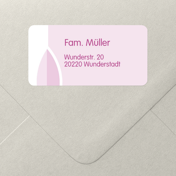 Zartes Rosa gibt den Ton an bei diesem Aufkleber, und das Element erinnert ein wenig an den Kopf eines kleinen Fisches. Verschicken Sie die Taufeinladung „Transparenter Fisch in Rosa“ mit diesem Aufkleber an Freunde und Verwandte, und jeder weiß schon vor dem Öffnen, wer hier zum Fest einlädt.
