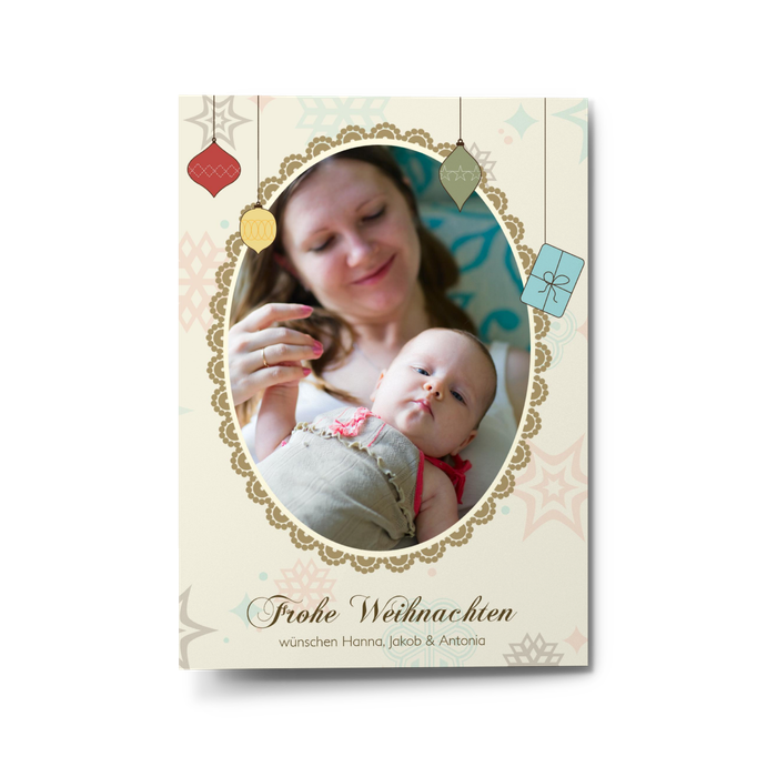 Diese Weihnachtskarte im nostalgischen Stil ist mehr als nur der Platz für Weihnachtsgrüße. Mit liebevoll gestalteten Bildern oder Familienportraits überraschen Sie die Großeltern oder fernen Verwandten sicherlich. Das Design dieser Karte lässt Träume und Erinnerungen an das Fest der Liebe wahr werden.