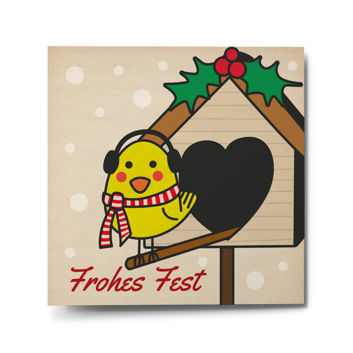 Tirili! Hier kündigt ein lustiger Vogel die bevorstehende Weihnachtszeit an. Mit der verspielten Wunderkarte Piepsie kommen Ihre Weihnachts- und Silvestergrüße bestimmt besonders gut an. Noch schnell ein paar Familienbilder einfügen und schon kann die Post auf Reisen gehen.