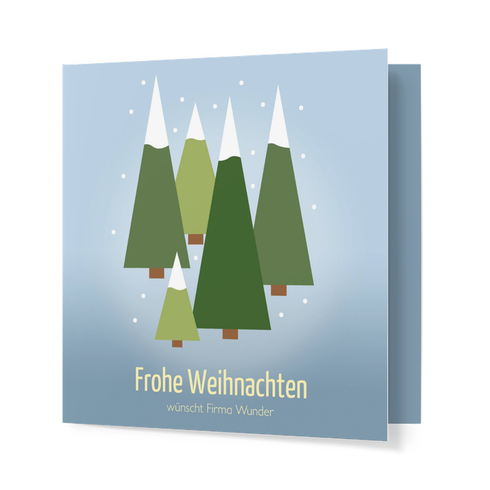 Geschäftspartner, Kunden und Freunde freuen sich über liebe Grüße zum Weihnachtsfest. Eine klassische Weihnachtskarte in edlem Design und einem zauberhaften Winterwald umrahmen Ihre Gedanken und Wünsche zum bevorstehenden Weihnachtsfest. Gestalten Sie eine Karte mit etwas Besonderem und personalisieren Sie diese mit einem Firmenfoto.