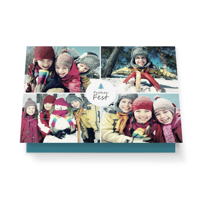 Kartenmotiv „Weihnachtliches Bilderquartett“ ist ein echter Kracher für Familien mit Spaß am Gestalten. Beim gemeinsamen Kreieren Ihrer