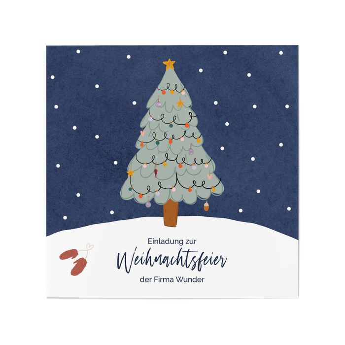 Einladung geschäftliche Weihnachtsfeier Weihnachtsbaum im Schneegestöber