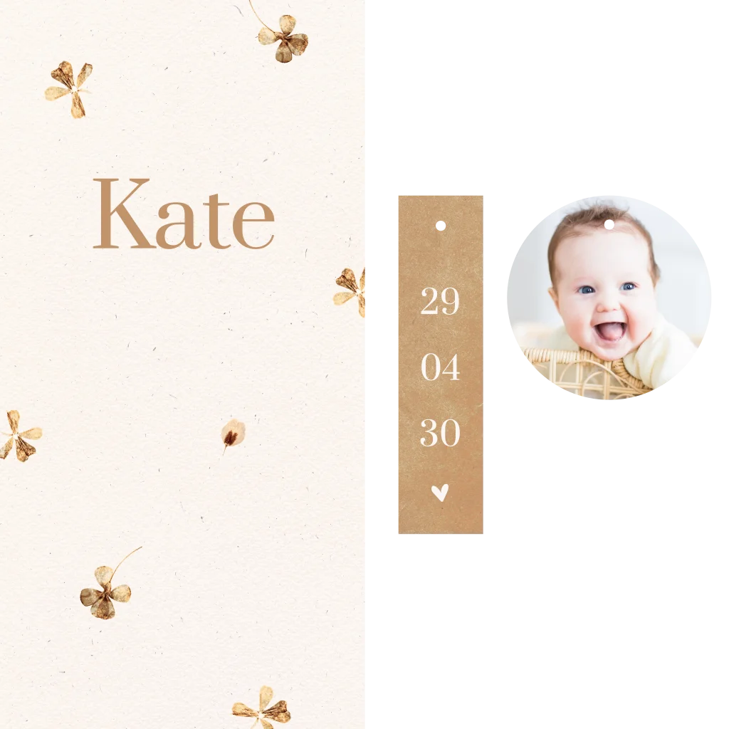 Minimalistisches Geburtskarte mit Blumen in Beige. Personalisiere es nach Belieben in unserem Editor.