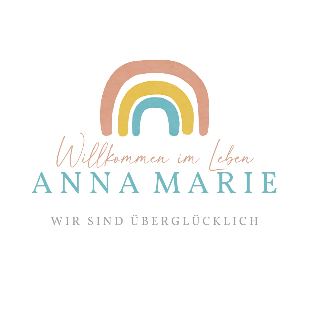 Überglücklich verkündet ihr mit der runden Geburtskarte mit dem bunten Babybogen, dass euer Sprössling endlich auf der Welt ist und euer Leben ab sofort bunter wird. Verratet mit den Symbolen Wecker, Maßband und Waage auf der Rückseite die Geburtsdaten eures Babys.