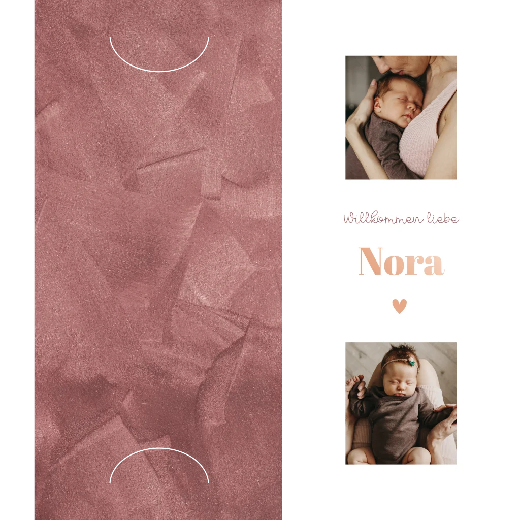 Ein bezauberndes Geburtskarte mit Fotocollage in Rosa, gestalten Sie die Karte individuell in unserem Editor.