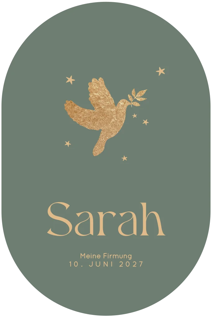 Überbringe eine einzigartige Einladung zu deiner Firmung mit dieser kapselförmigen Karte mit der goldenen Taube. Deine Verwandten werden Augen machen, wenn sie diese Karte erhalten und sich auf eine große Feier vorbereiten und freuen.
