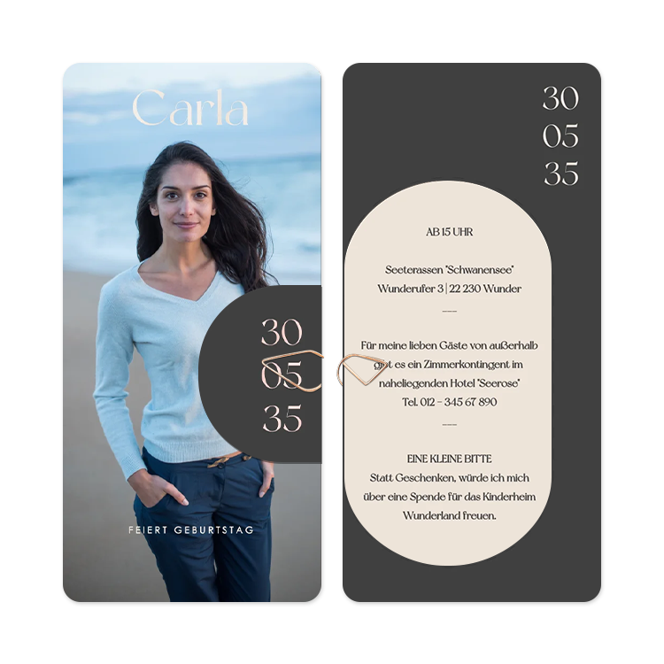 Elegante Hochzeitseinladung im minimalistischen Design, personalisieren Sie die Karte in unserem Editor.