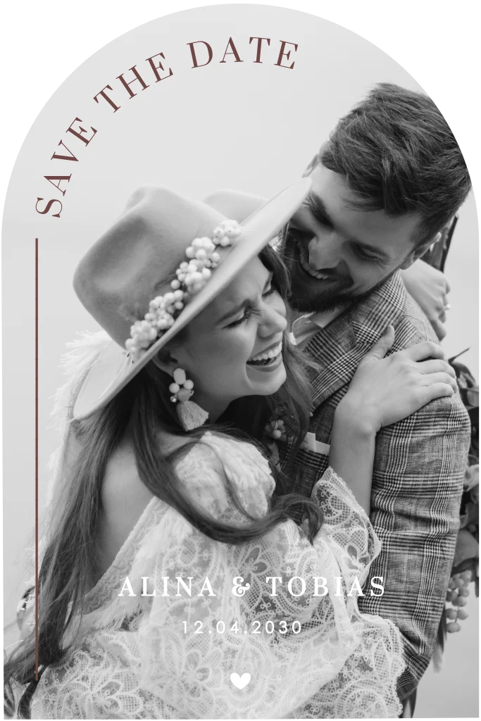 Spezielle Save-the-Date Karte mit Foto. Gestalten Sie Ihre Karte in unserem Editor.