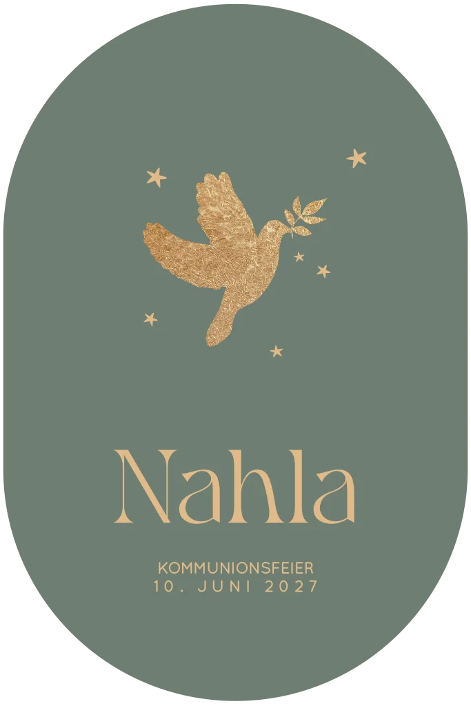 Überbringe eine einzigartige Einladung zu deiner Kommunion mit dieser kapselförmigen Karte mit der goldenen Taube. Deine Verwandten werden Augen machen, wenn sie diese Karte erhalten und sich auf eine große Feier vorbereiten und freuen.
