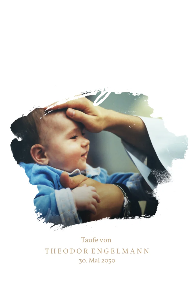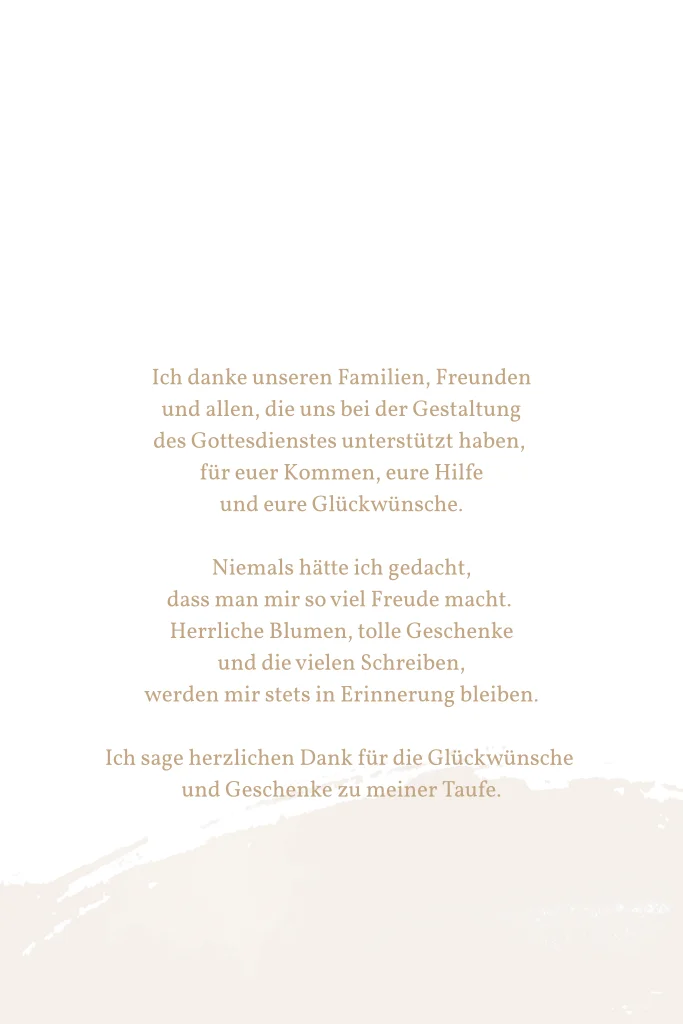 Der Moment der Taufe eures Sprösslings im Aquarellfenster mit dem Dankesschriftzug in eine unserer Textveredelungen macht eure Dankbarkeit zu einer einzigartigen Karte. Bedankt euch für die herzlichen Glückwünsche und lieben Geschenke.
