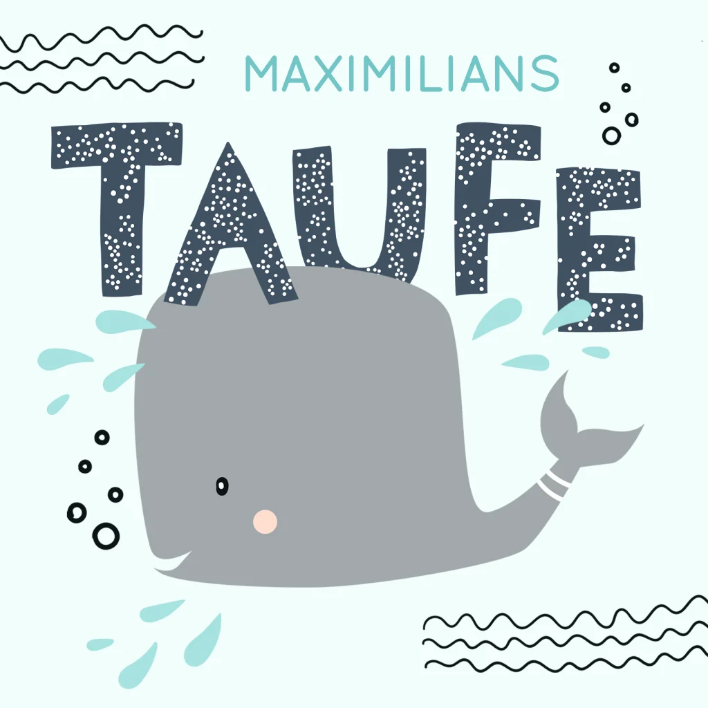 Es ist soweit: Die Taufe eures Sprösslings ist in greifbarer Nähe. Ladet mit dieser Einladungskarte mit dem kleinen fröhlichen Wal freundlich zum gemeinsamen Ritual ein. Platziere innen das Lieblingsfoto des Täuflings. Freut euch im Anschluss auf ein gemeinsames Mittagessen und Kaffeetrinken.