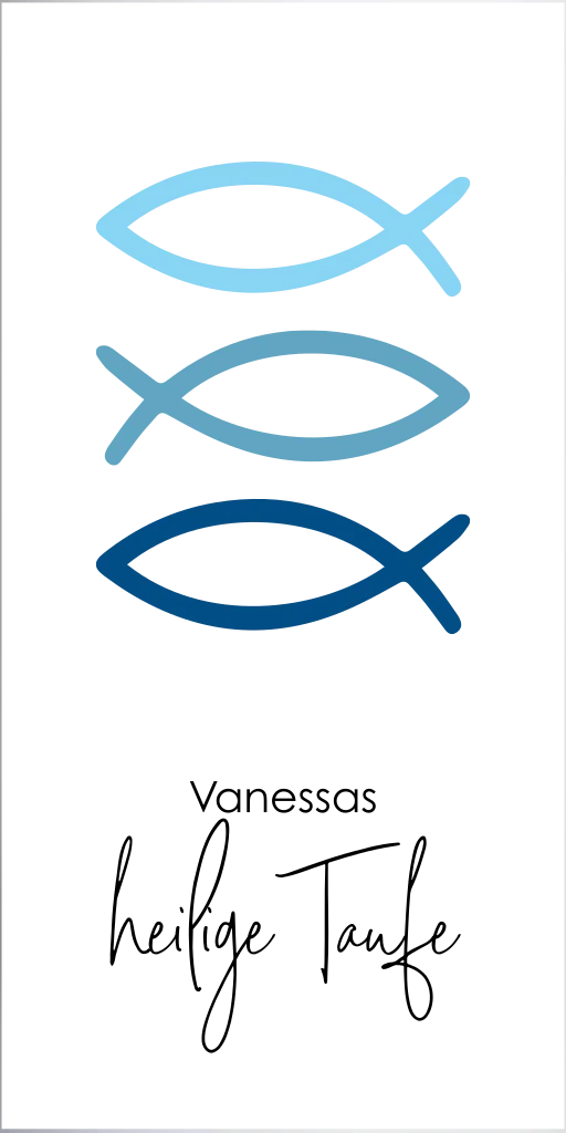 Die Kerze zur Taufe signalisiert ein Licht für Neues. Ein neuer Lebensabschnitt deines Kindes beginnt. Auf der Kerze sind 3 blaue Ichthys zu sehen. Vervollständige die Kerze mit dem Namen deines Kindes.