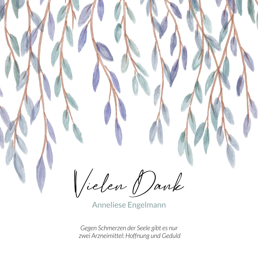 Die Trauerweide symbolisiert den endlosen Schmerz des Verlustes und den Fluss der Zeit, der nicht aufhaltbar ist. Platzieren Sie im Inneren zur Erinnerung ein Foto der verstorbenen Person und bedanken Sie sich würdevoll für die tröstlichen Worte und Hilfen.