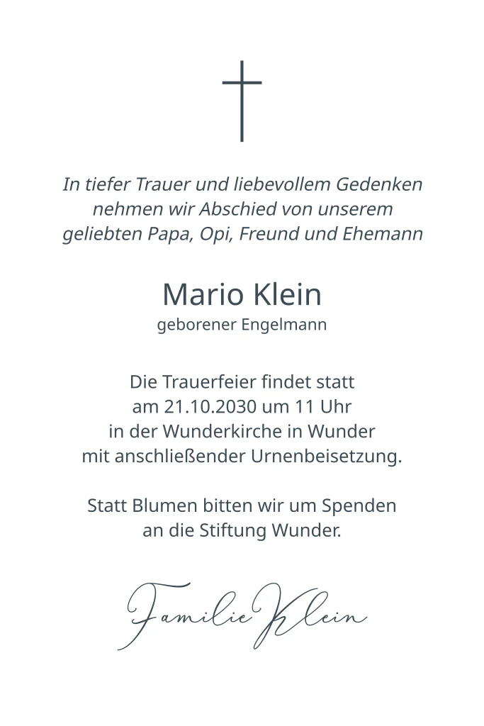Einladungskarten Trauerfeier