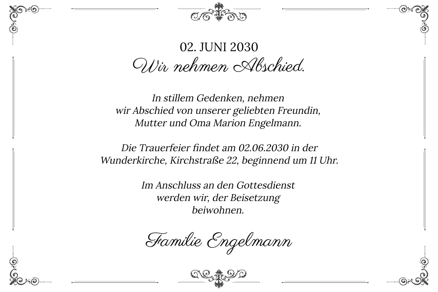 Einladungskarten Trauerfeier