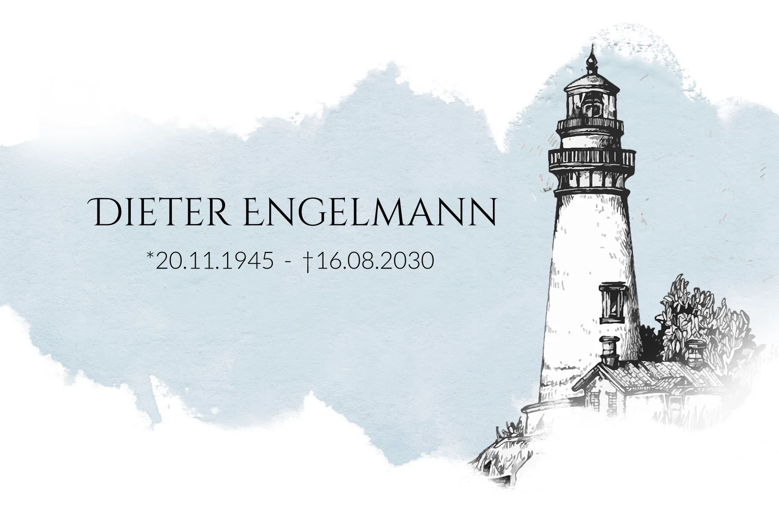 Die kleine Hütte und der Leuchtturm am Hang weisen dem Verstorbenen den Weg durch die ruhige See. Fest verankert bleibt die Person in Ihren Erinnerungen. Bedanken Sie sich bei den Hinterbliebenen mit einem Erinnerungsfoto für die tröstlichen Worte und Hilfen.