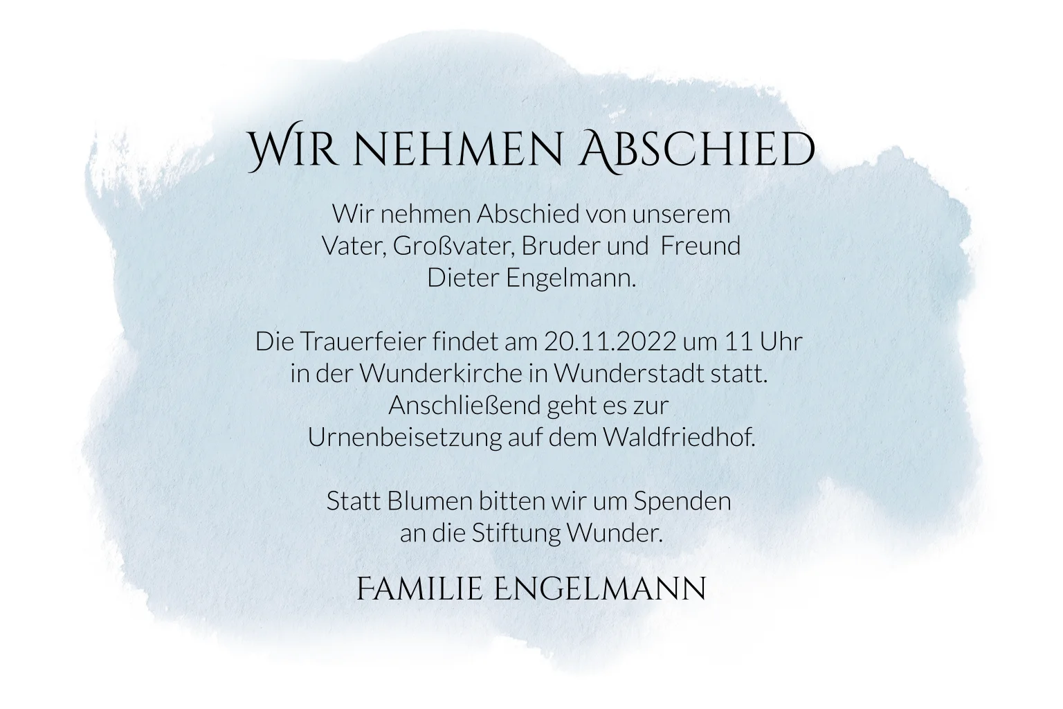 Einladungskarten Trauerfeier