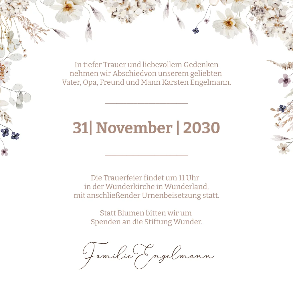 Einladungskarten Trauerfeier