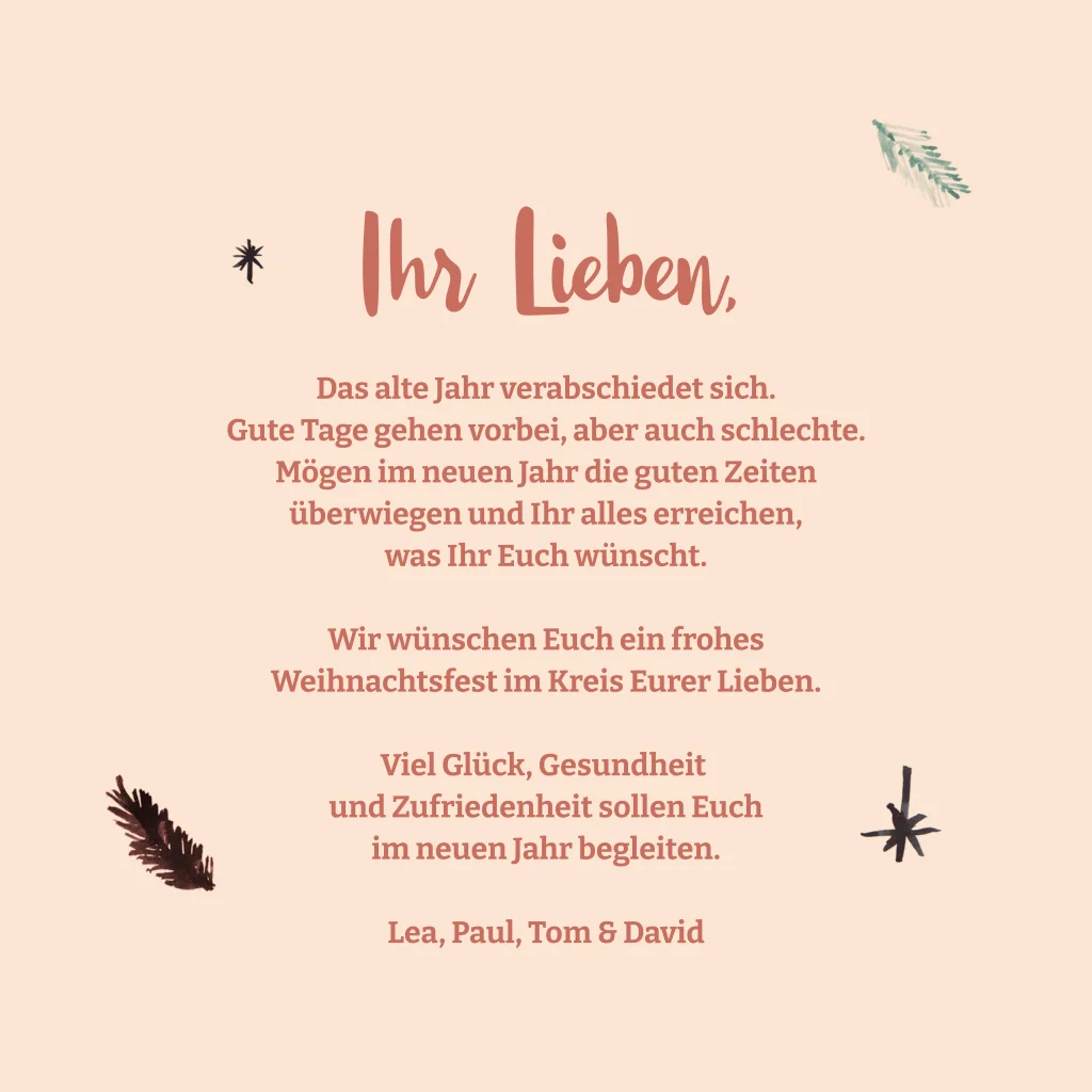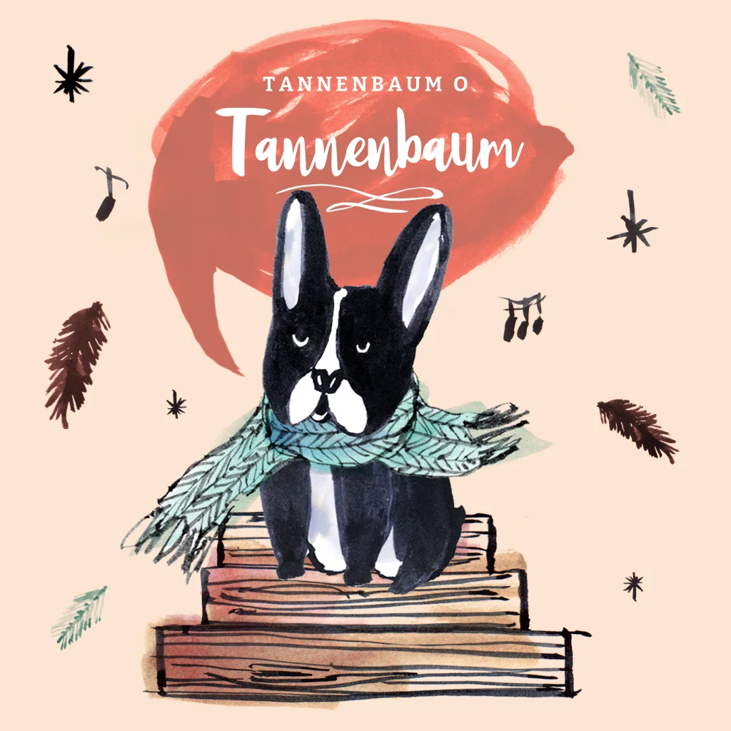 Eine festliche Weihnachtskarte mit niedlicher Hundillustration. Passe das Design in unserem Editor ganz einfach an.