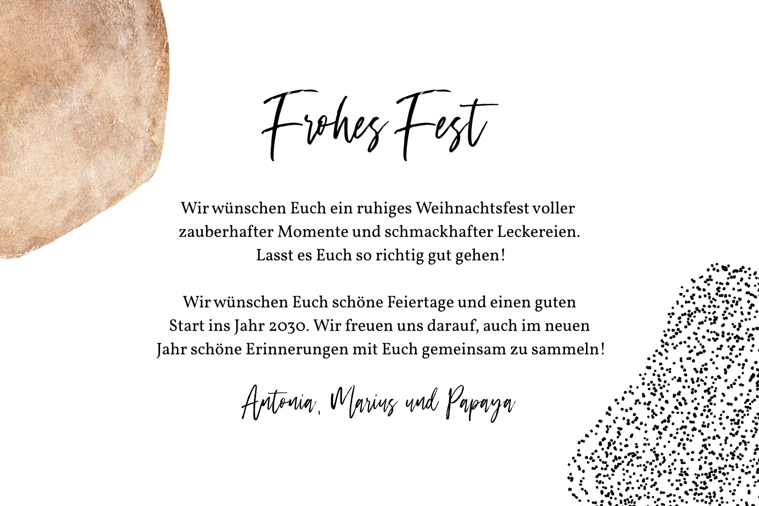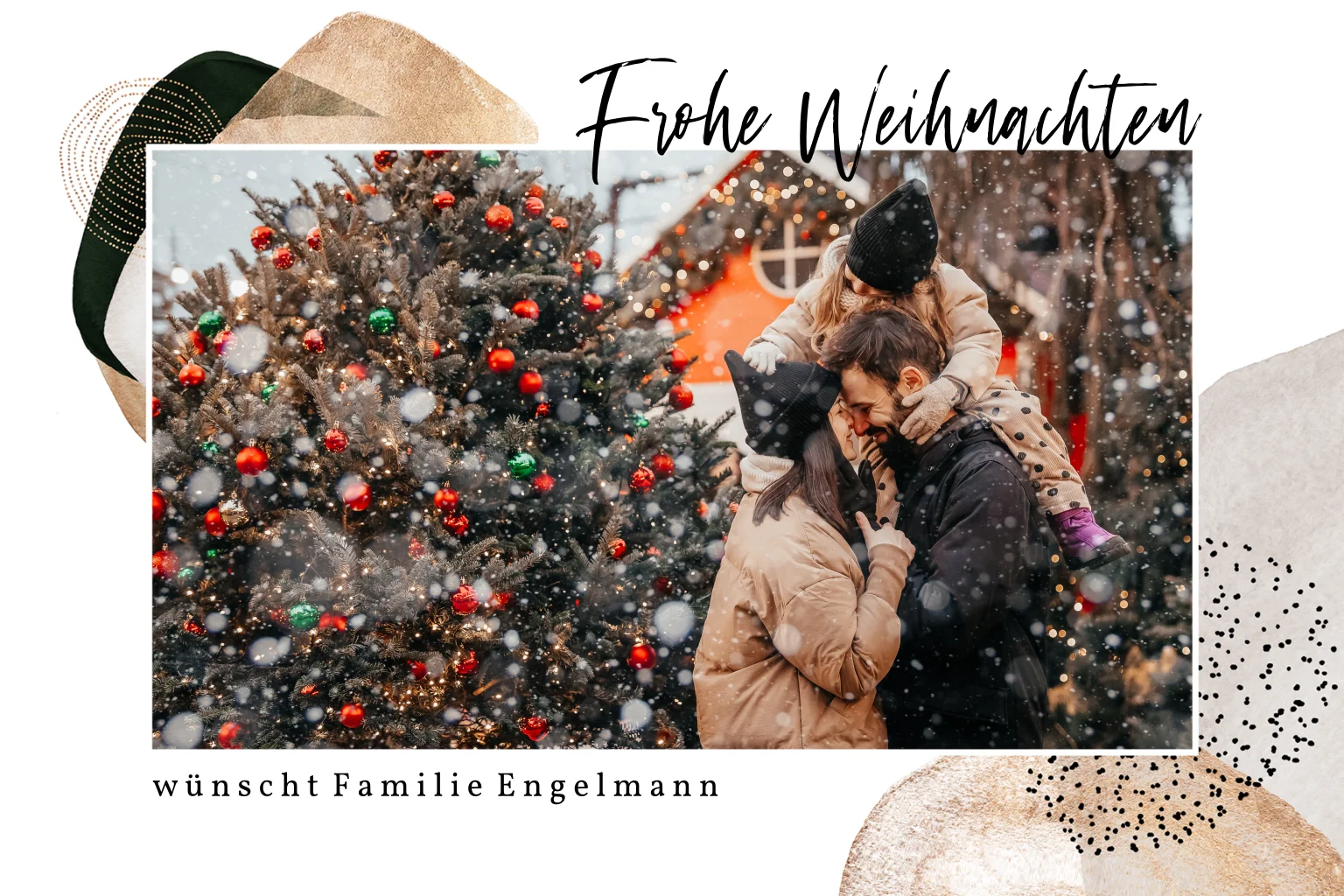 Platziere ein Bild von dir oder deiner Familie auf diese Karte und wünsche deine Liebsten frohe Weihnachten. Das Design der Karte ist in den Farben gold/braun und schwarz, sodass dein hochgeladenes Bild super zum Vorschein kommt.