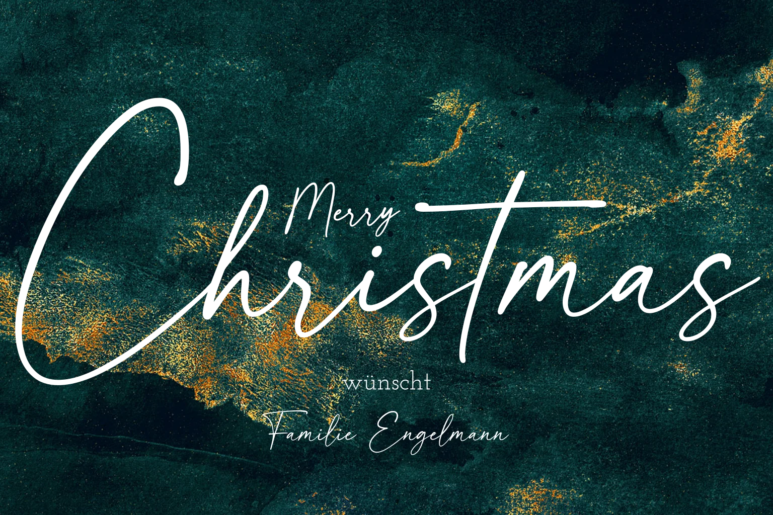 Eine stilvolle Weihnachtskarte in Grün und Gold. Bearbeiten Sie das Design nach Ihren Wünschen in unserem Online-Editor.