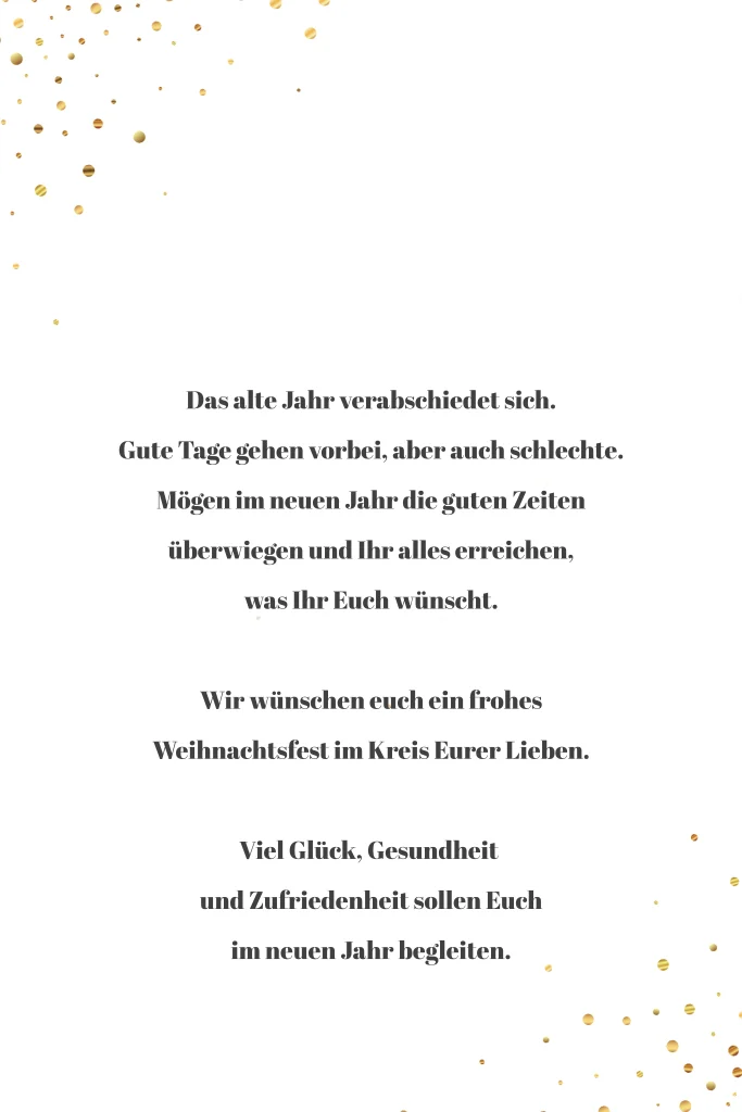 HoHoHo in eine unserer Textveredelungen mit den Pünktchen in Goldoptik sorgen für eine zauberhafte Festlichkeit. Versprühe festliche Stimmung mit deinem Lieblingsfoto im Inneren und wünsche deinen Liebsten ein besinnliches Weihnachtsfest und einen guten Rutsch ins neue Jahr.