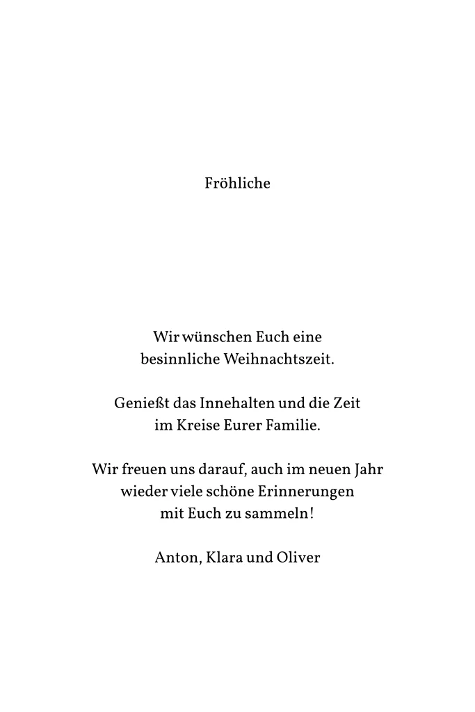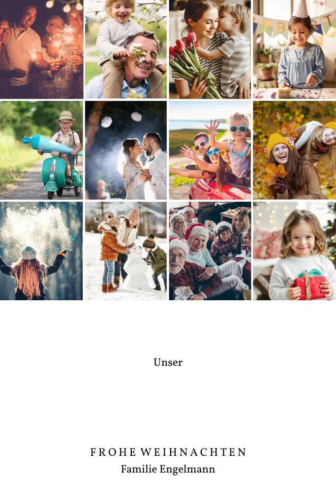 Feierliche Weihnachtskarte mit Fotocollage, personalisieren Sie in unserem Editor für ein unvergessliches Jubiläum.
